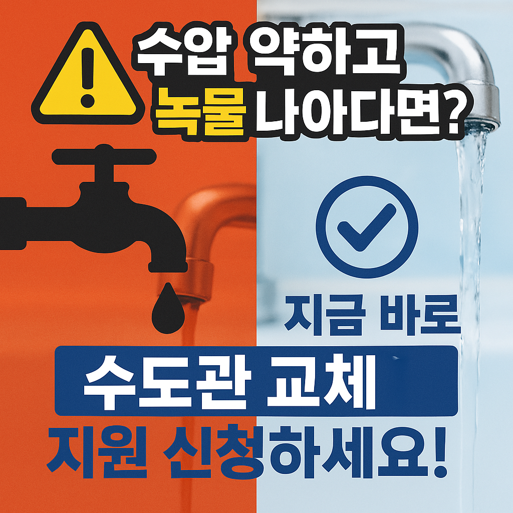 20년 이상 된 노후 주택에 거주하고 계신가요? 갑자기 수압이 약해지거나 수돗물에서 녹물이 나오는 등 불편을 겪고 있다면, 녹슨 수도관이 원인일 수 있습니다. 다행히 정부와 지자체에서는 이러한 문제를 해결하기 위해 노후 수도관 교체 지원 사업을 운영하고 있는데요. 오늘은 녹슨 수도관 교체 신청방법, 지원 대상, 절차, 그리고 주의사항까지 하나하나 상세히 알려드리겠습니다.